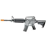 (More customer reviews)First off, let me say that I am not a gamer and also that this is my first airsoft gun. I actually bought this gun from another supplier. This gun is constructed mostly of what appears to be a very high grade of plastic, except for the barrel, front sight, magazine, the little hop-up door and the innards which are metal. The gun looks very realistic - looks just like my brother's real M-4 although the barrel on his is a couple of inches longer and obviously not orange on the end. The gun weighs 6 lbs, 9.5 ounces with the magazine full of .25g bb's. The only complaints I would offer is that the rear sight has about 1/16" of play side to side (I ended up putting a red dot scope with a riser in place of the handle and sight) and the rear stock pipe has a bit of wiggle in it - it should be totally solid. The gun makes a fair amount of noise - from 100 feet you know a full automatic gun is being fired, so if you want stealth this gun is not for you. The gun has a very rapid rate of fire and at 50 feet I get a grouping of about 1 1 /2 inches and a fairly good grouping at 75 feet. I can keep the bb's in about a 1 foot area on full auto at 150 feet. Shooting .25g bb's it will almost completely penetrate 3/8" cardboard at 50 feet, and in fact sometimes does. With .2g bb's it doesn't penetrate 3/8" cardboard quite as far as the .25's but will still break through the cardboard, which was a surprise to me - I thought the .2's going faster, would penetrate further. On full automatic it will totally destroy even the 3/8" cardboard. No jams so far with about 2000 bb's. I am pleased with the gun and I give this gun 4 stars - deducted one star for the rear sight and the wiggle in the rear stock pipe which really don't seem to affect the operation of the gun. I would certainly recommend.