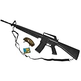 Description Real 1:1 Scale. 38.5" Long. Shoots around 250fps. Includes M16A2, Goggles, stock, small bag of bbs.